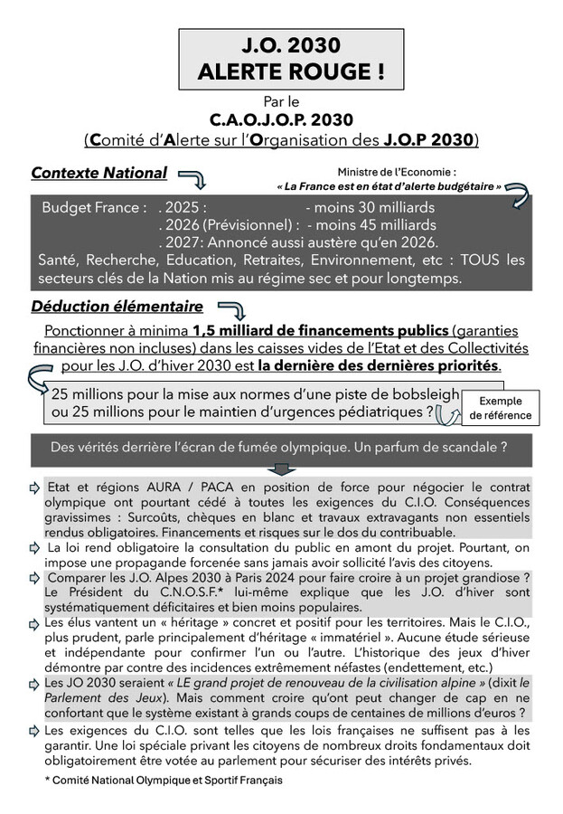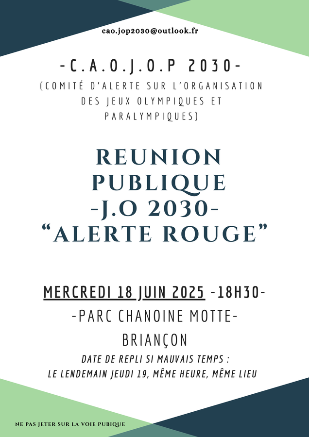 Association ayant pour but d'alerter sur les conséquences néfastes du choix des Alpes françaises pour l'organisation des Jeux olympiques et paralympiques d'hiver 2030.
